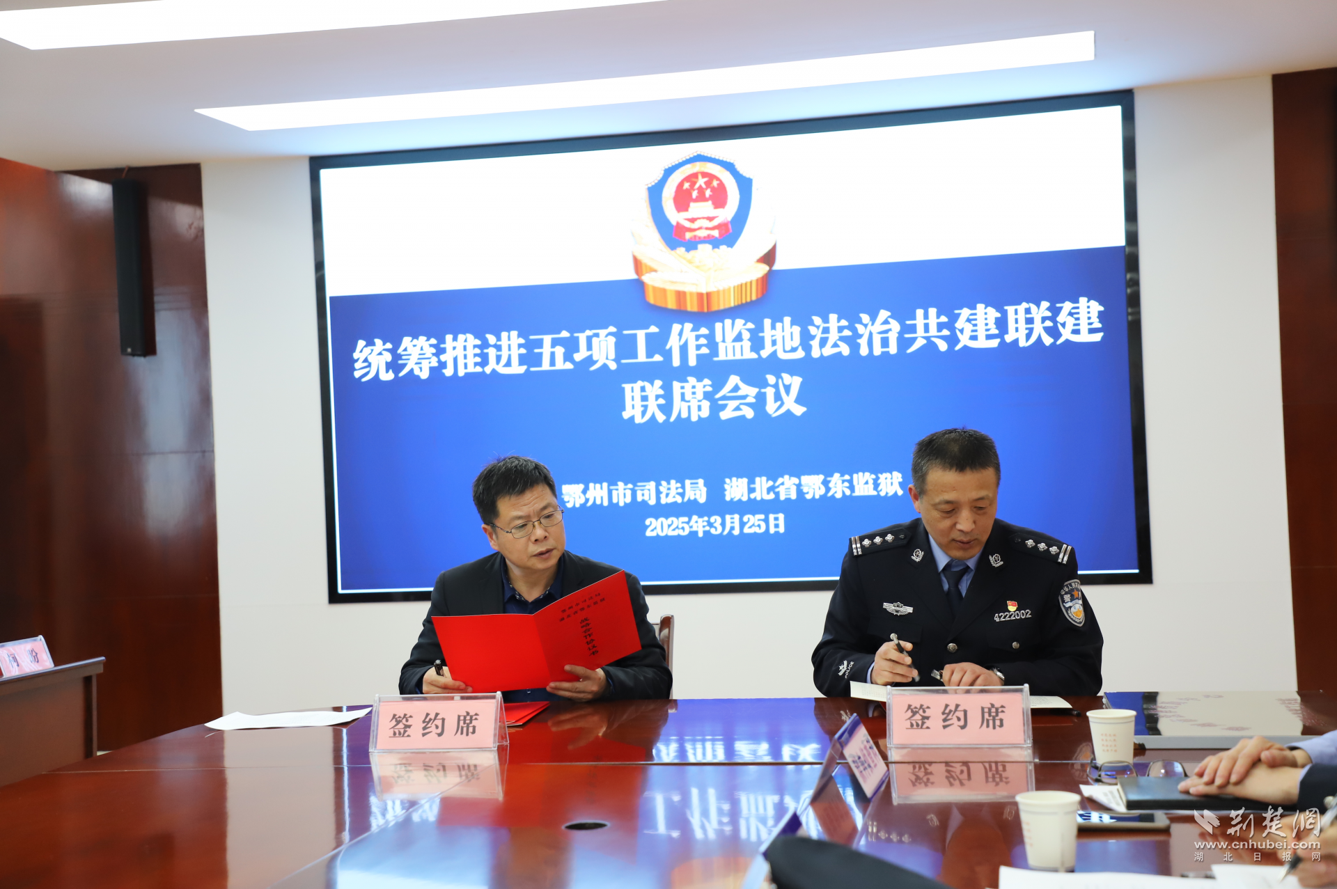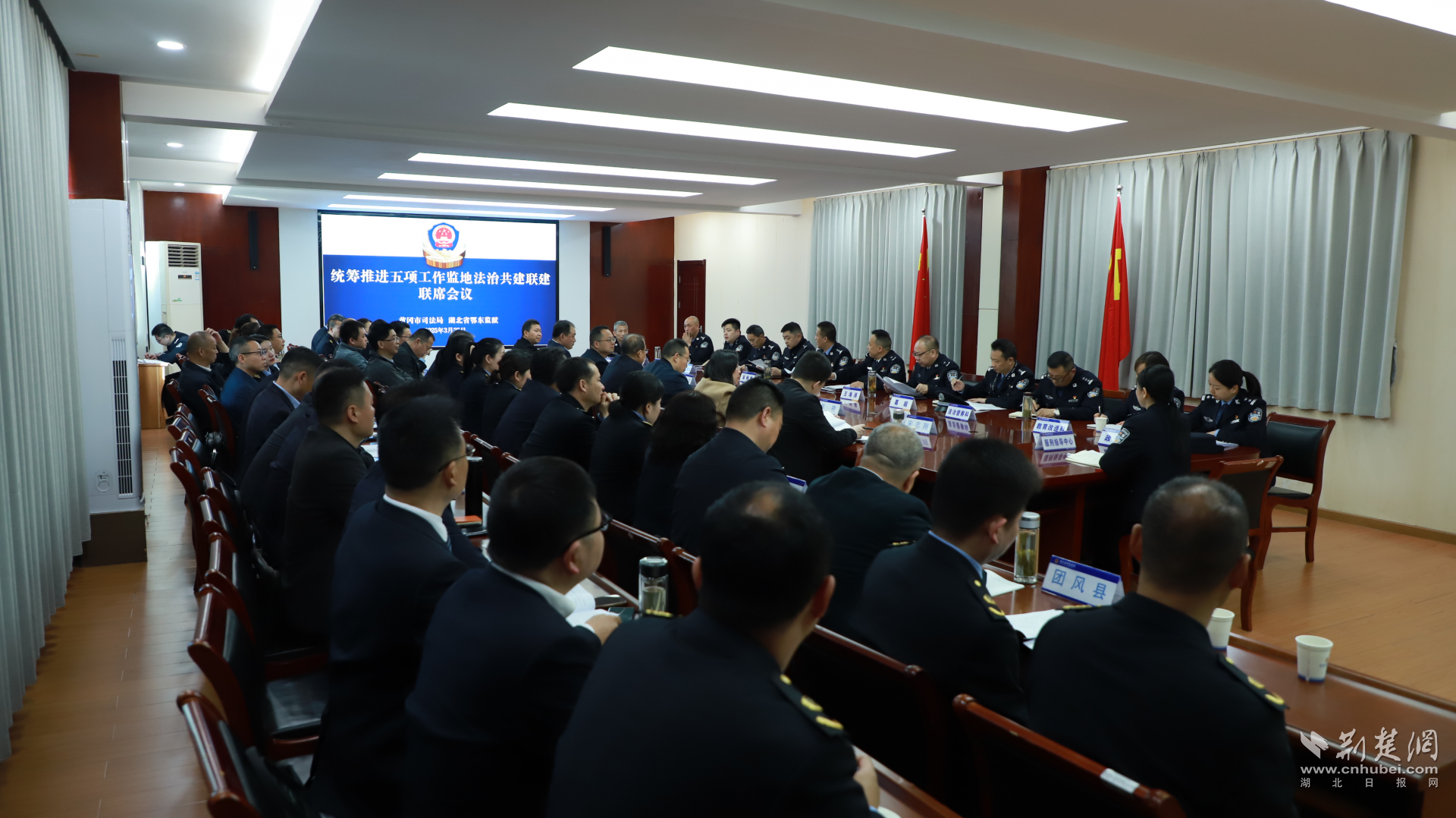 荊楚網(湖北日報網)訊(通訊員 高科、王子豪)為深化監(jiān)地協(xié)作共建,3月25日,湖北省鄂東監(jiān)獄與黃岡市、鄂州市司法局開展監(jiān)地法治共建聯(lián)建聯(lián)席會議,來自黃岡市、鄂州市司法局相關負責人及兩地7縣2市6區(qū)部分基層司法所長、社矯局局長及律師80余人參加座談,探索完善統(tǒng)籌推進教育改造、社區(qū)矯正、安置幫教、糾紛化解、法治宣傳五項工作機制,預防和減少重新犯罪,切實維護國家安全和社會穩(wěn)定。