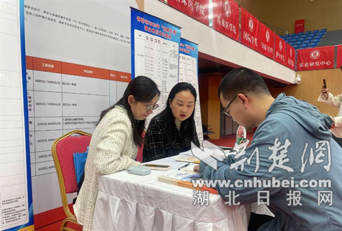 在同步舉行的招聘雙選會上,鐘祥市攜教育、醫療、科技等領域的190個優質崗位赴會引才,吸引了眾多學子駐足咨詢。據統計,現場初步達成就業意向27人。