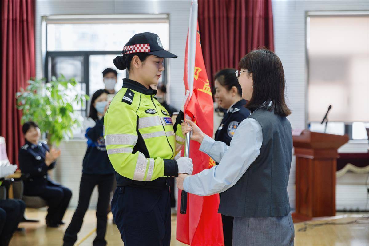 湖北日報訊(記者楊然、通訊員武龔萱)3月27日上午,武漢市公安局江岸區交通大隊院內,一隊女交警整齊列隊,她們英姿颯爽地接過“邱益英女交警先鋒隊”的隊旗,并莊重地宣誓。