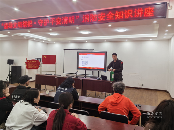 荊楚網(湖北日報網)訊(通訊員 許夢瑩)清明節臨近,為提升轄區企業、商戶及居民的消防安全意識,筑牢節日期間安全防線,3月27日,武漢市武昌區白沙洲街道星苑社區聯合普消湘安防火咨詢服務中心,開展了“倡導文明祭掃 守護平安清明”消防安全知識講座。轄區企業負責人、個體工商戶及居民代表共30余人參與。