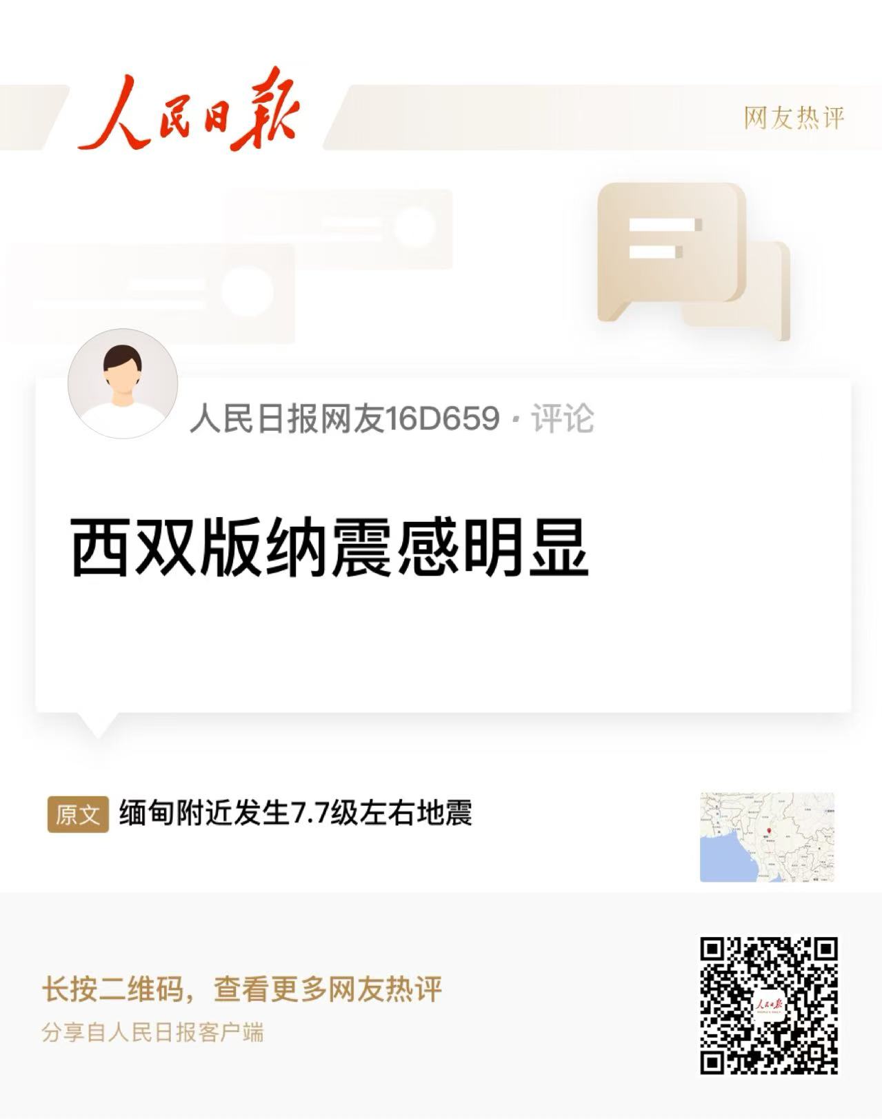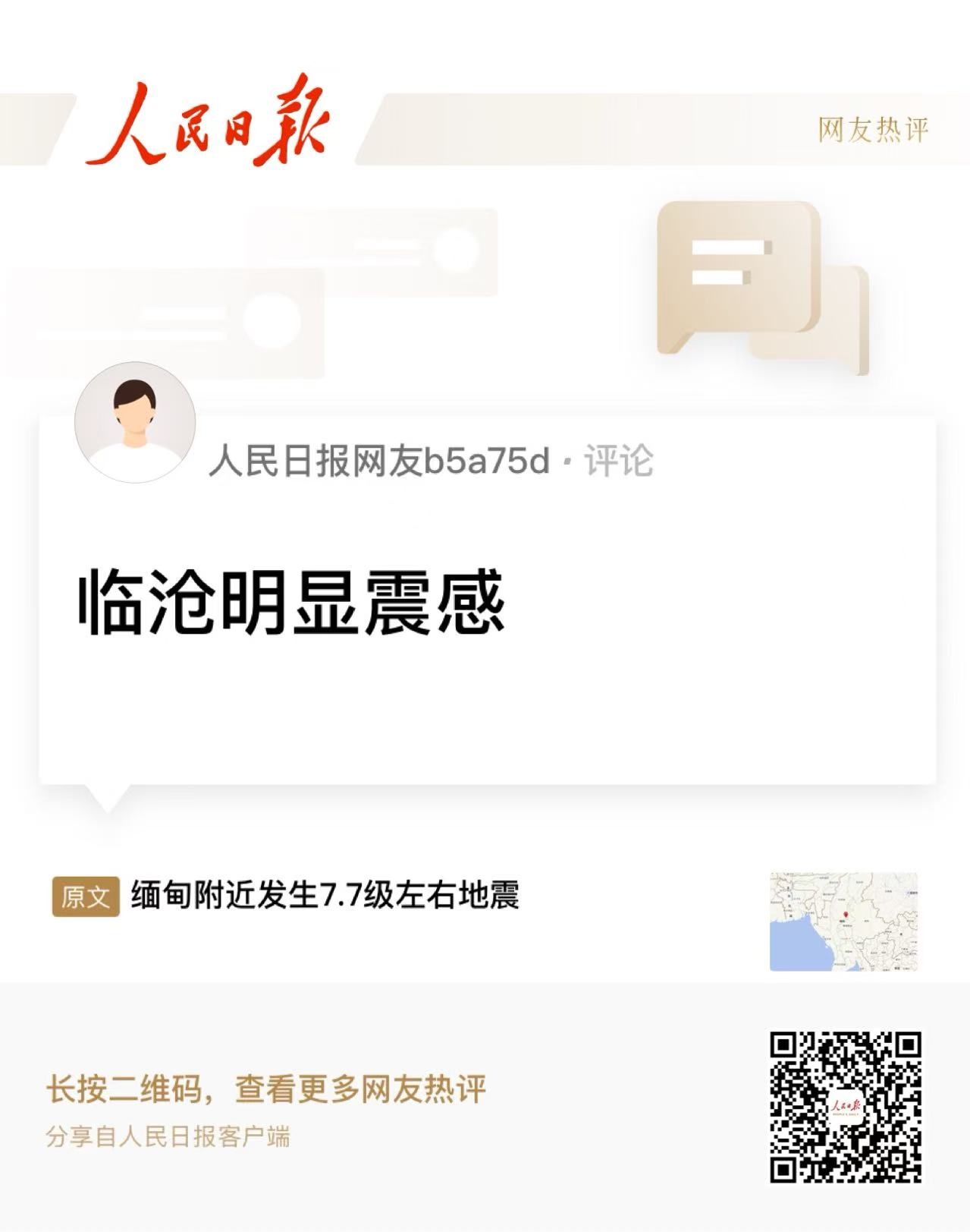 中國地震臺網(wǎng)自動測定:03月28日14時20分在緬甸附近(北緯22.05度,東經(jīng)95.84度)發(fā)生7.7級左右地震,最終結(jié)果以正式速報為準。
