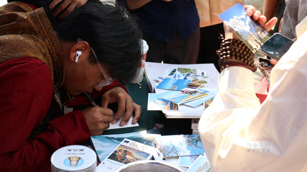 藏族學生用藏文書寫游客姓名。 通訊員供圖