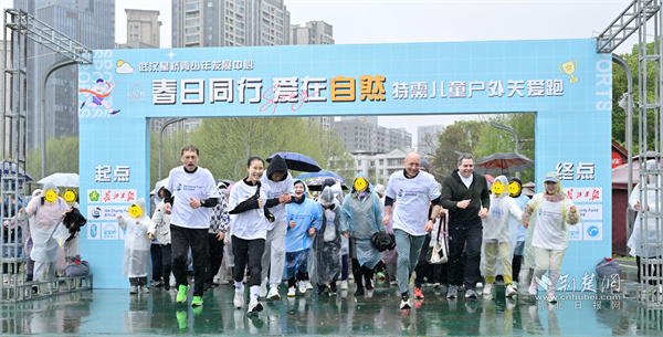 “慢點沒關系,我們看看江邊的花好不好?”奔跑過程中,武漢大學“星星點燈”志愿服務隊和湖北大學師范學院的志愿者陪伴孩子們一同奔跑。他們用笑容和耐心打破溝通的壁壘,為這些特殊跑者筑起愛的屏障。