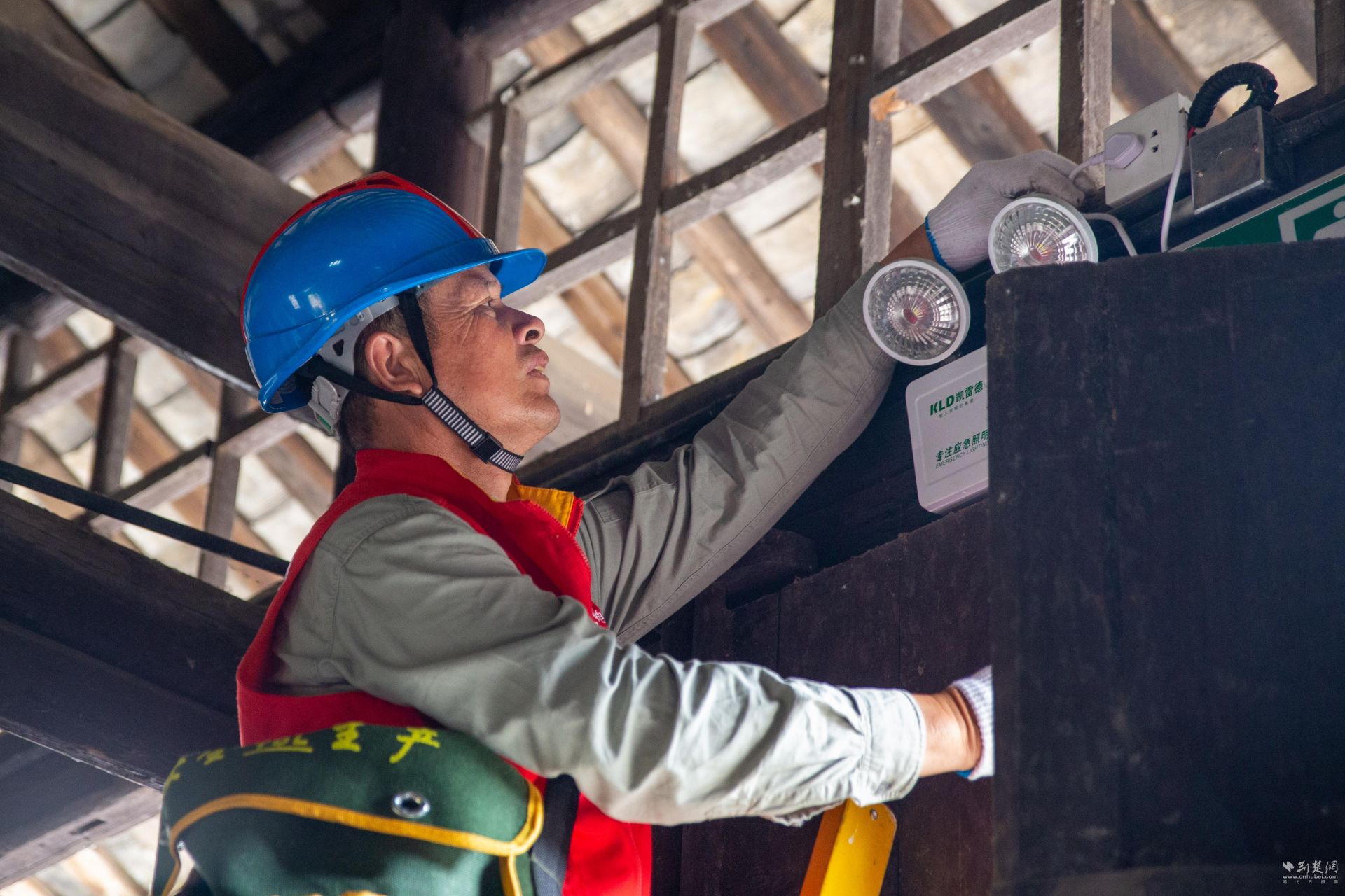 “先檢查陳列館線路和燈具,保證開館前線路通道用電正常。”在老街最具代表的歷史建筑陳列館,楊華帶領本組的3名隊員認真檢查配電箱、射燈和投影儀等重要保電設備。