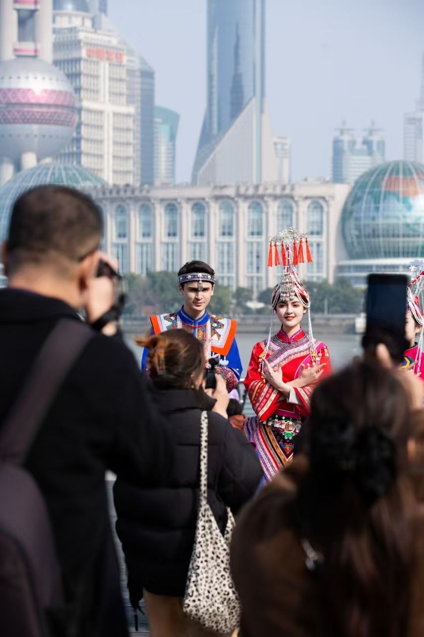 城市CBD也能爆改民族風情秀場?農歷三月三前夕,多位百萬粉絲時尚達人們現身上海外灘、杭州湖濱步行街等地,身穿畬族服飾,手捧畬族彩帶,引得路人紛紛拿起手機,直呼“民族風贏麻了”!