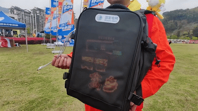 “‘xiōng fū gī lì(幸福吉祥)’,這邊可以免費充電!”在“popo崽”營地的暖心驛站旁,來自國網景寧供電公司的“電小二”志愿者張建明背著帶有LED屏的包為游客送上服務。