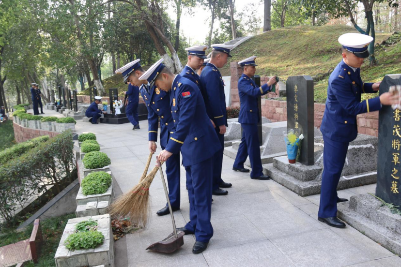 默哀結束后,全體人員在紀念碑前重溫入黨誓詞,用鏗鏘有力的誓言,彰顯出鐵心向黨、鐵志為民的堅定信念和決心。隨后,大家手持衛生工具,仔細的打掃墓園衛生,掃帚掠過青石階,掃去落葉與時光,卻掃不盡英烈們用熱血澆筑的信仰,它早已扎根在這片土地。