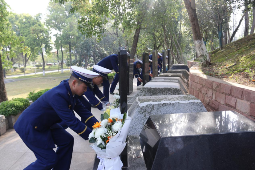 活動當天,大隊全體隊員整齊列隊,神情肅穆,集體脫帽默哀,以無聲的方式表達對革命先烈的崇高敬意和深切緬懷。隨后全體人員上前向英烈敬獻圣潔菊花。
