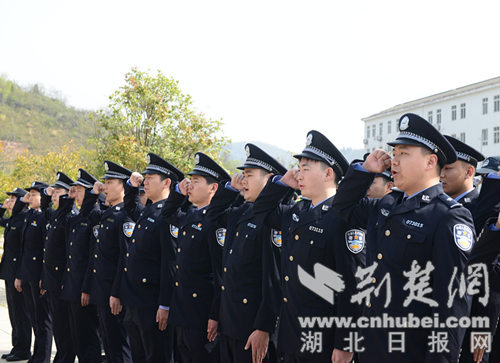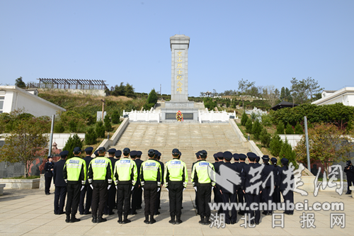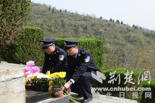 民輔警向京山公安烈士黃士林、劉貴斌敬獻(xiàn)鮮花