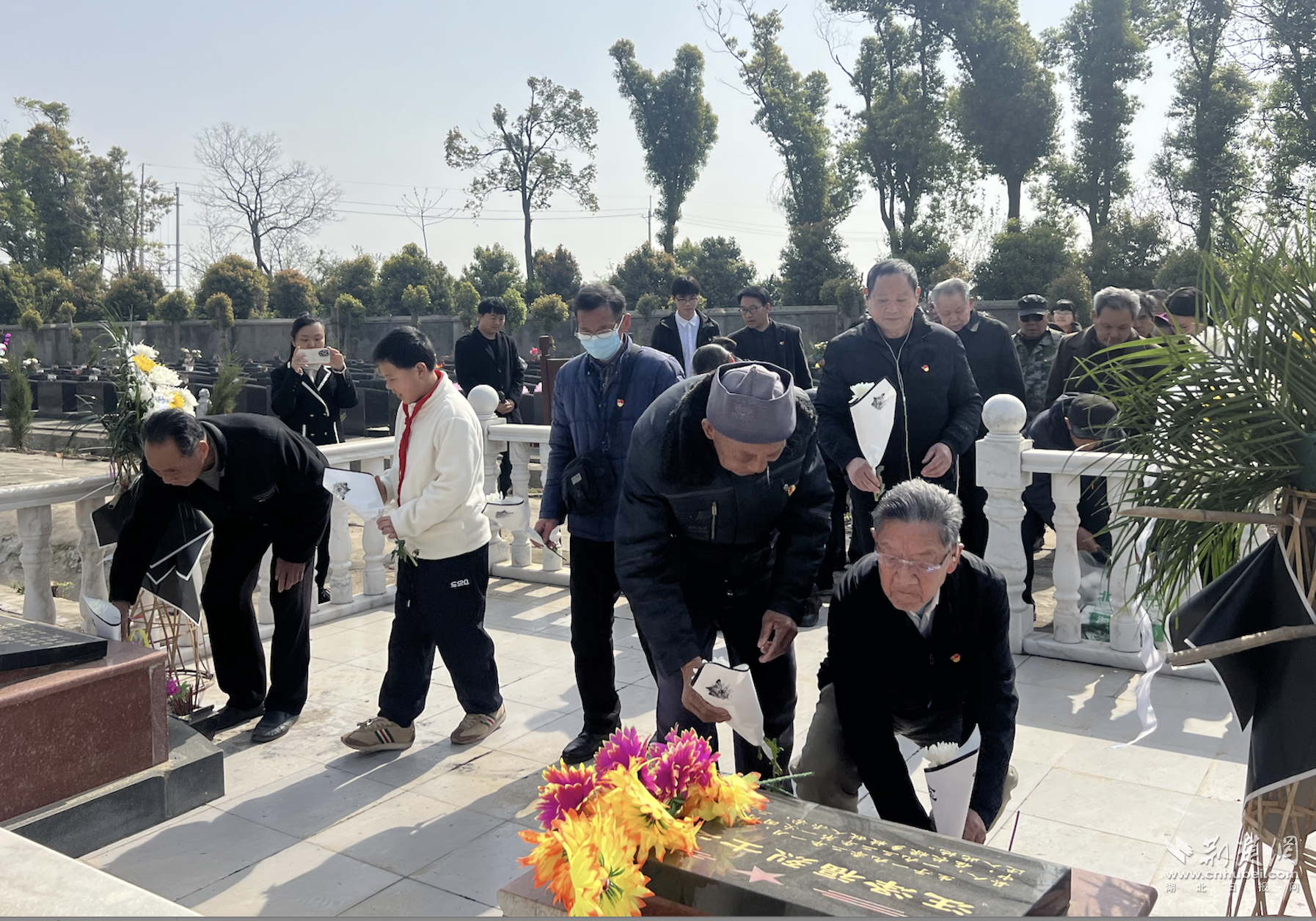 清掃結束,全體黨員與少先隊員在烈士紀念碑前列隊肅立,在工作人員的講解下,大家學習了烈士生平事跡。隨后,全體人員在墓碑前列隊、默哀、依次向革命烈士敬獻鮮花,表達對烈士的深切哀思。