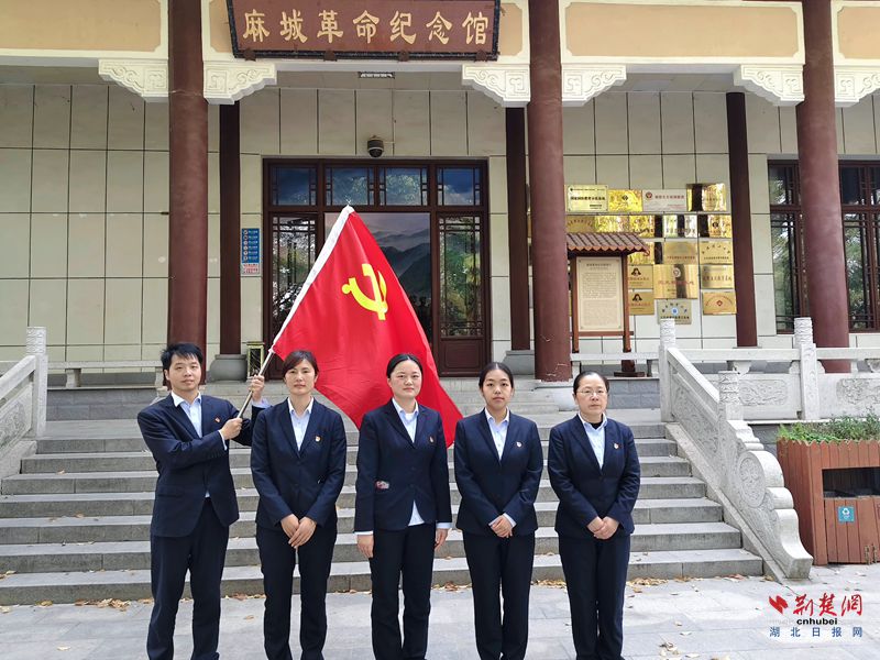 “我志愿加入中國共產黨……”陽光下的黃麻起義和鄂豫皖蘇區革命烈士紀念碑巍峨矗立,全體黨員整齊列隊肅立,面向紀念碑默哀致敬,隨后高舉右拳,齊聲重溫入黨誓詞,鏗鏘誓言與碑身浮雕上沖鋒的紅軍戰士身影交相輝映,一場特殊黨課正在展開。