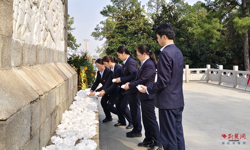 宣誓結束后,黨員們緩步繞行至紀念碑側面浮雕墻前,將手中寄托著對先烈無限追思的白色紙花輕輕放在浮雕前,朵朵素花連成一片純凈的緬懷花海。