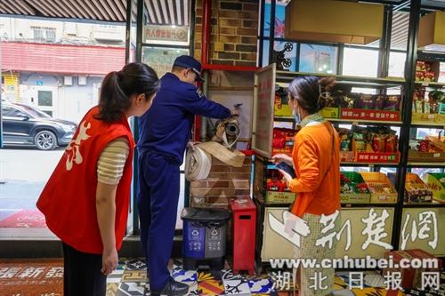 消防監督員聯合社區對沿街門店內消防設施進行抽查。通訊員 供圖