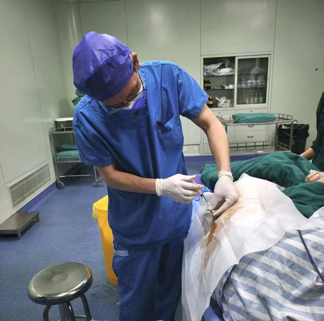 3 月 11 日,手術室的無影燈準時亮起。麻醉科副主任沈述威半弓著腰,指尖在老人側彎的脊柱表面反復觸診,采用側入路避開鈣化椎體,將麻醉藥劑精準注入腰椎間隙。