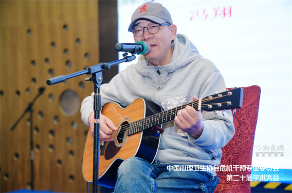 組委會特邀武漢方言民謠發起人、音樂制作人、2025年央視元宵晚會演唱者馮翔老師傾情演繹其代表作《漢陽門花園》。這首浸潤著武漢城市記憶的民謠作品,以溫暖質樸的旋律和浸潤鄉音的真摯吟唱,為與會者構筑起獨特的心靈療愈場域。他將醫學人文與音樂藝術深度融合,曾用《漢陽門花園》等充滿城市體溫的歌聲撫慰了無數受創的心靈,有效緩解了特殊時期群眾普遍存在的焦慮情緒,為武漢重大公共衛生事件中的心理危機干預提供了極具人文溫度的實踐范本,用植根本土文化的情感共振為心理健康服務注入持久生命力。