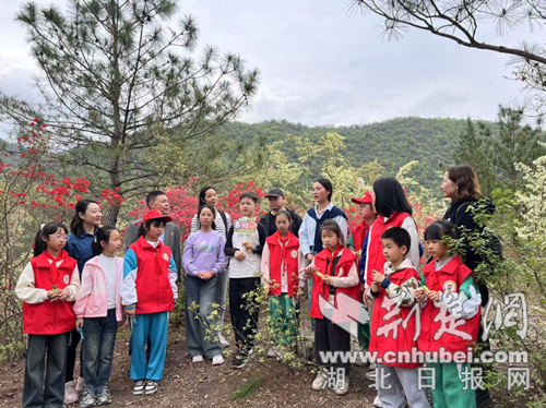 當(dāng)日下午,大家還參觀了南莊村美麗鄉(xiāng)村建設(shè)示范點(diǎn)和朝陽店村杜鵑花海基地。朝陽店村副主任熊立燕介紹:“朝陽店村的野生映山紅以深紅、大紅為主,紅如云霞、燦如鮮血,因?yàn)椋覀兡_下的這片土地,浸染了革命先烈的鮮血。抗日戰(zhàn)爭和解放戰(zhàn)爭時(shí)期,是新四軍五師、江漢軍區(qū)被服廠生產(chǎn)基地,在艱苦的戰(zhàn)爭年代,許多革命英雄獻(xiàn)身在這片土地,我們今天看到的鮮艷的映山紅,這是英雄生命開出的鮮花。