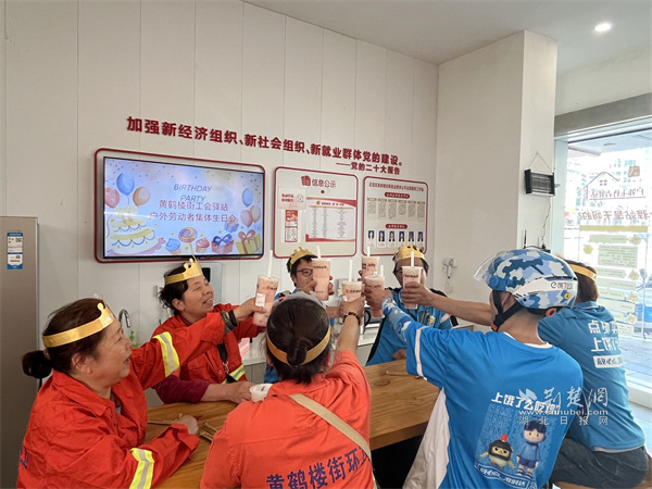 荊楚網(湖北日報網)訊(通訊員 劉永慧)為傳遞對戶外勞動者的關心關愛,增強他們的歸屬感和幸福感,4月10日,武昌區黃鶴樓街道工會聯合會在街道新就業群體驛站開展戶外勞動者集體生日會活動,為十余名4月過生日的外賣騎手、環衛工人等一線勞動者送上專屬祝福與溫暖關懷。