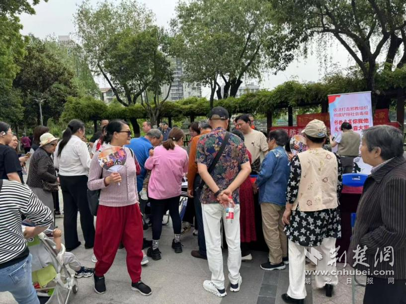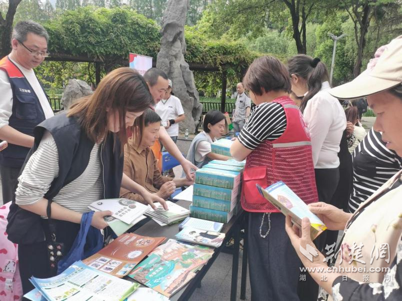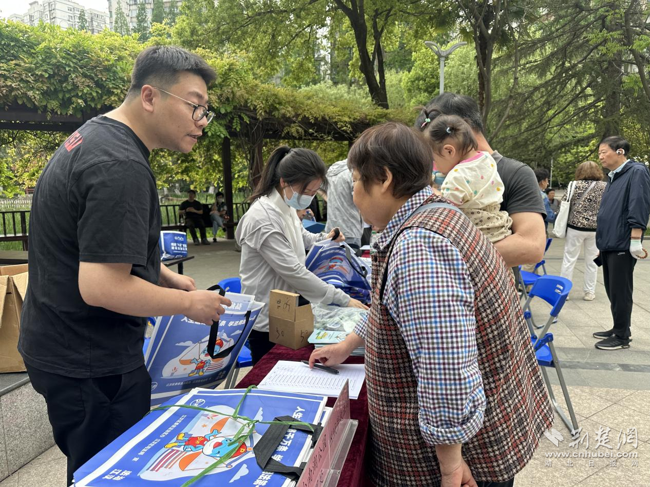 在小南湖公園的中心廣場上,人群熙熙攘攘。在法律咨詢區,來自區民宗局的工作人員、區法院的法官助理、新華街道辦事處的工作人員、湖北郵政江漢分公司的工作人員、上海邦信陽(武漢)律師事務所的律師為居民群眾答疑解惑,并圍繞國家安全、民族宗教、民法典、禁毒、反詐等主題開展普法宣傳,現場發放普法宣傳資料和宣傳品400余份。
