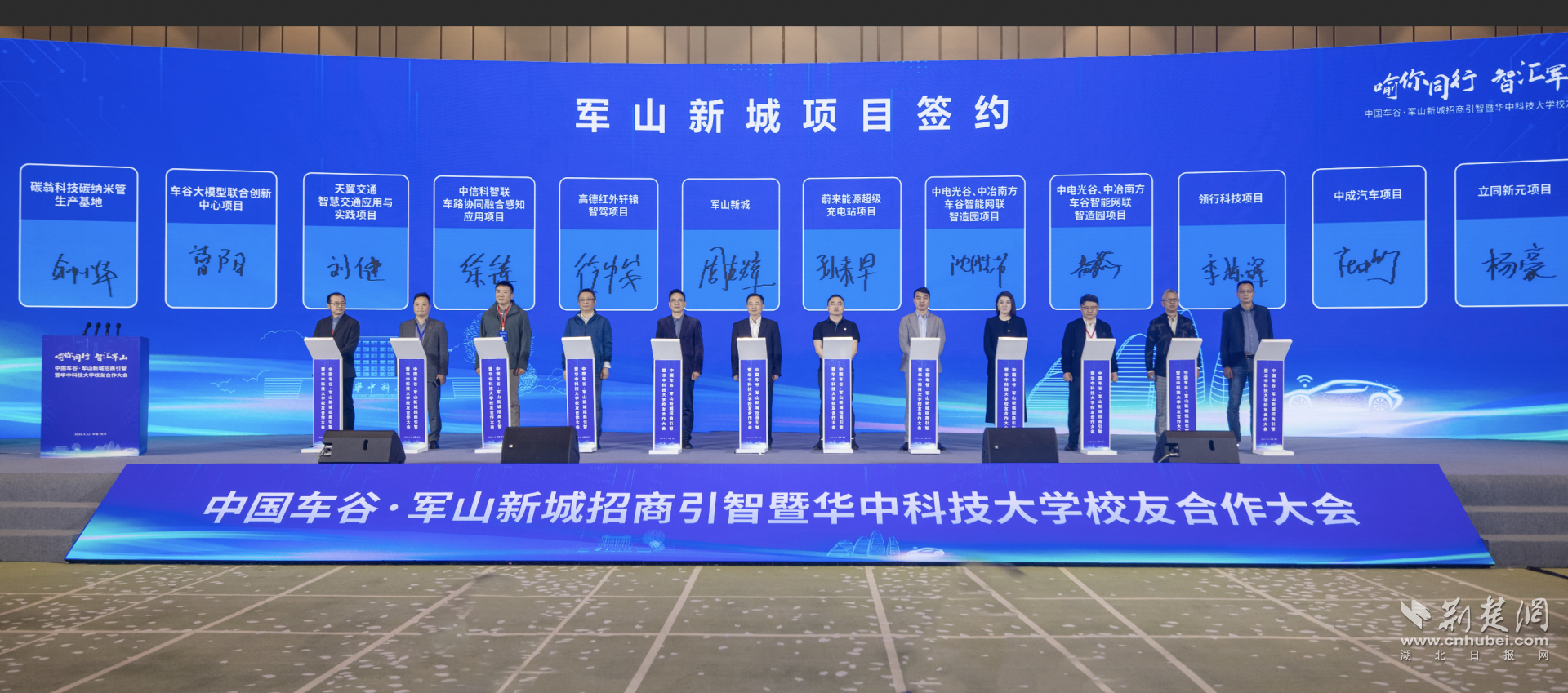 活動(dòng)中,碳翁科技碳納米管生產(chǎn)基地、車谷大模型聯(lián)合創(chuàng)新中心、天翼交通、中信科智聯(lián)V2X、高德紅外軒轅智駕、中電光谷與中冶南方車谷智能網(wǎng)聯(lián)智造園、領(lǐng)行科技、中成汽車、立同新元、蔚來能源超級(jí)充電站等10個(gè)優(yōu)質(zhì)項(xiàng)目簽約落戶軍山新城。