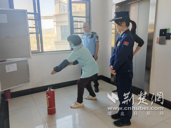 養(yǎng)老機(jī)構(gòu)工作人員演示滅火器操方法。朱凡堯 攝