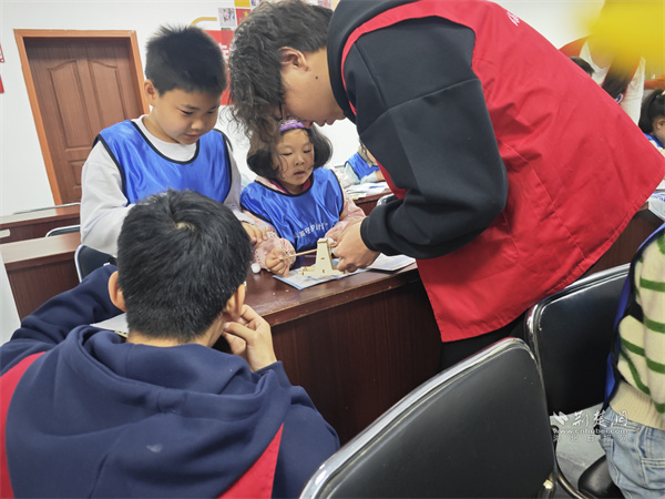 “快樂星期六”志愿服務隊的志愿者幫助孩子們制作手工。 通訊員供圖