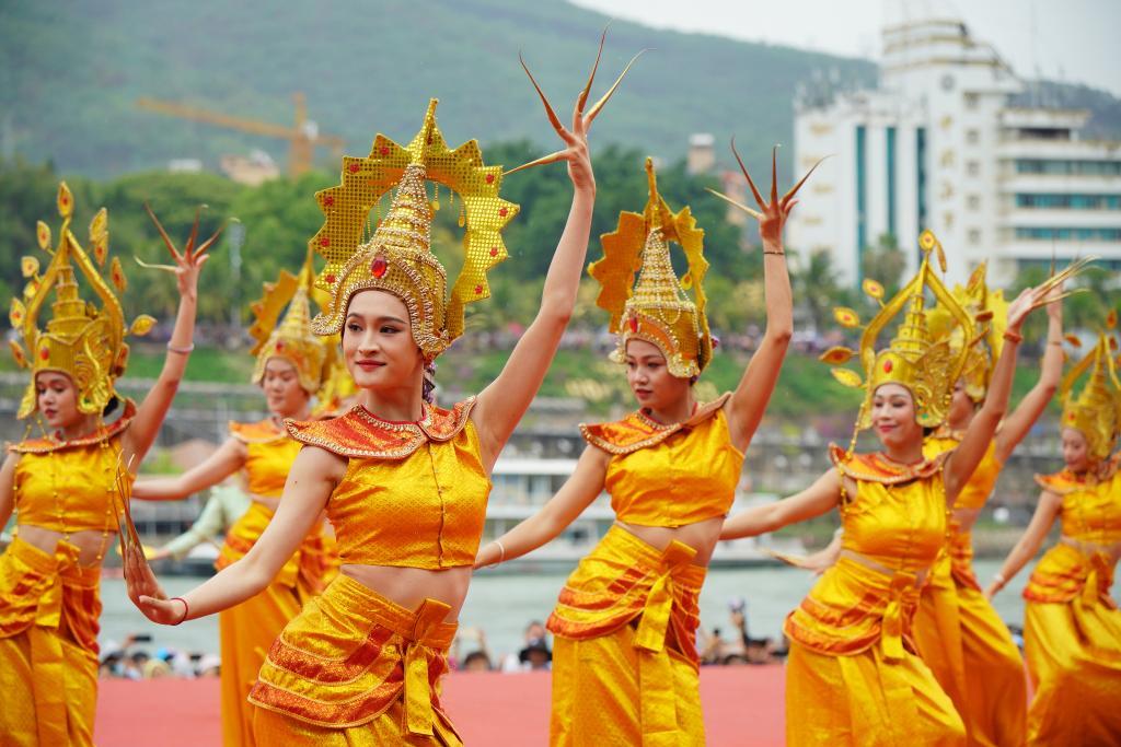 4月13日,在西雙版納傣族自治州景洪市,演員在傣歷新年節(2025年潑水節)慶祝大會上表演。新華社記者 高詠薇 攝