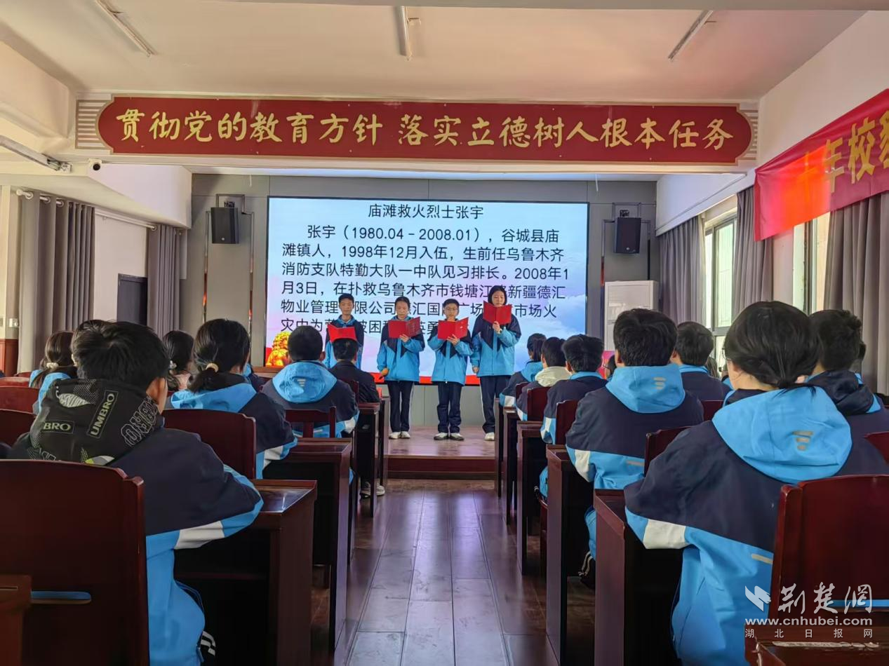 圖為2025年清明前夕,谷城縣舉辦“緬懷先烈 感恩前行”張宇烈士事跡走進學校系列活動現(xiàn)場。通訊員供圖