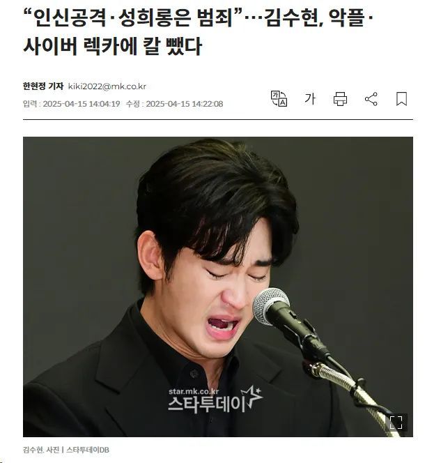 據(jù)@中新文娛,金秀賢深陷和金賽綸自未成年起交往等疑云,其經(jīng)紀(jì)公司Gold Medalist15日發(fā)出聲明,警告網(wǎng)絡(luò)謠言適可而止:“網(wǎng)絡(luò)社群和SNS上猖獗的惡意誹謗、散播假訊息、人身攻擊、性騷擾等都是不能輕縱的犯罪行為”。公司決定啟動(dòng)法律程序,將針對(duì)YouTube、X(原Twitter)等海外平臺(tái),聯(lián)絡(luò)海外法律代理人,展開強(qiáng)硬應(yīng)對(duì)。
