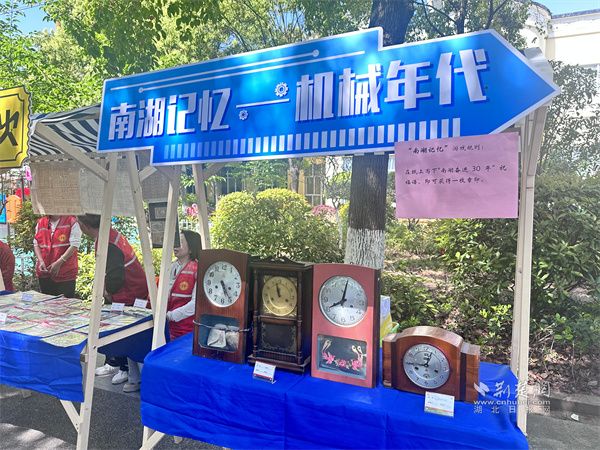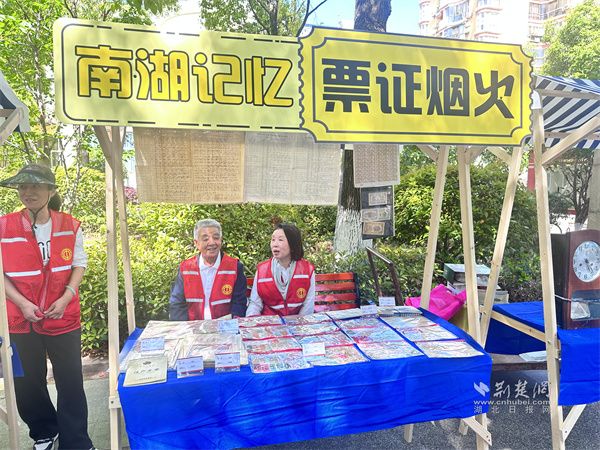 主舞臺外,“長廊懷舊集市”人潮熙攘,懷舊、美食、服務(wù)、互動、打卡五大體驗區(qū)精彩紛呈。愛心餐飲單位劉胖子家常菜免費發(fā)放熱干面,中醫(yī)義診、口腔體檢、磨刀、配鑰匙、愛心義賣等便民服務(wù)貼心實用,桂花糕、糖畫、冰糖葫蘆等美食勾起兒時回憶,剪紙、航模、打卡立牌等特色活動讓人沉浸其中,居民現(xiàn)場揮毫?xí)鴮憽澳虾洃洝泵P字即可參與抽獎贏取購物袋等暖心禮品。展區(qū)陳列著居民自發(fā)捐贈的舊電影票根、俱樂部門票、南湖花園城住戶手冊、煙標(biāo)、糧票、書信、搪瓷杯碗等老物件,串聯(lián)起三十載時光印記,講述著南湖的“聲影流年”。