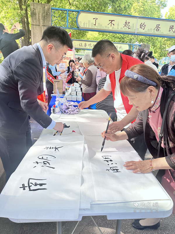 居民書寫“南湖記憶”毛筆字。 記者 李燕攝