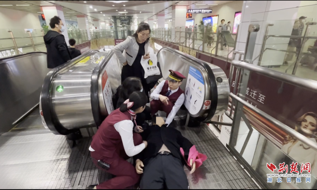 荊楚網(wǎng)(湖北日報網(wǎng))訊(通訊員:李丹、產(chǎn)啟斗、何詩琪 視頻剪輯:胡瑩)4月13日10時30分許,一位年過7旬的老年男乘客乘坐武漢地鐵2號線到達中山公園站下車,在乘坐手扶電梯前往站廳途中,突發(fā)疾病身體后仰,暈倒在電扶梯上。
