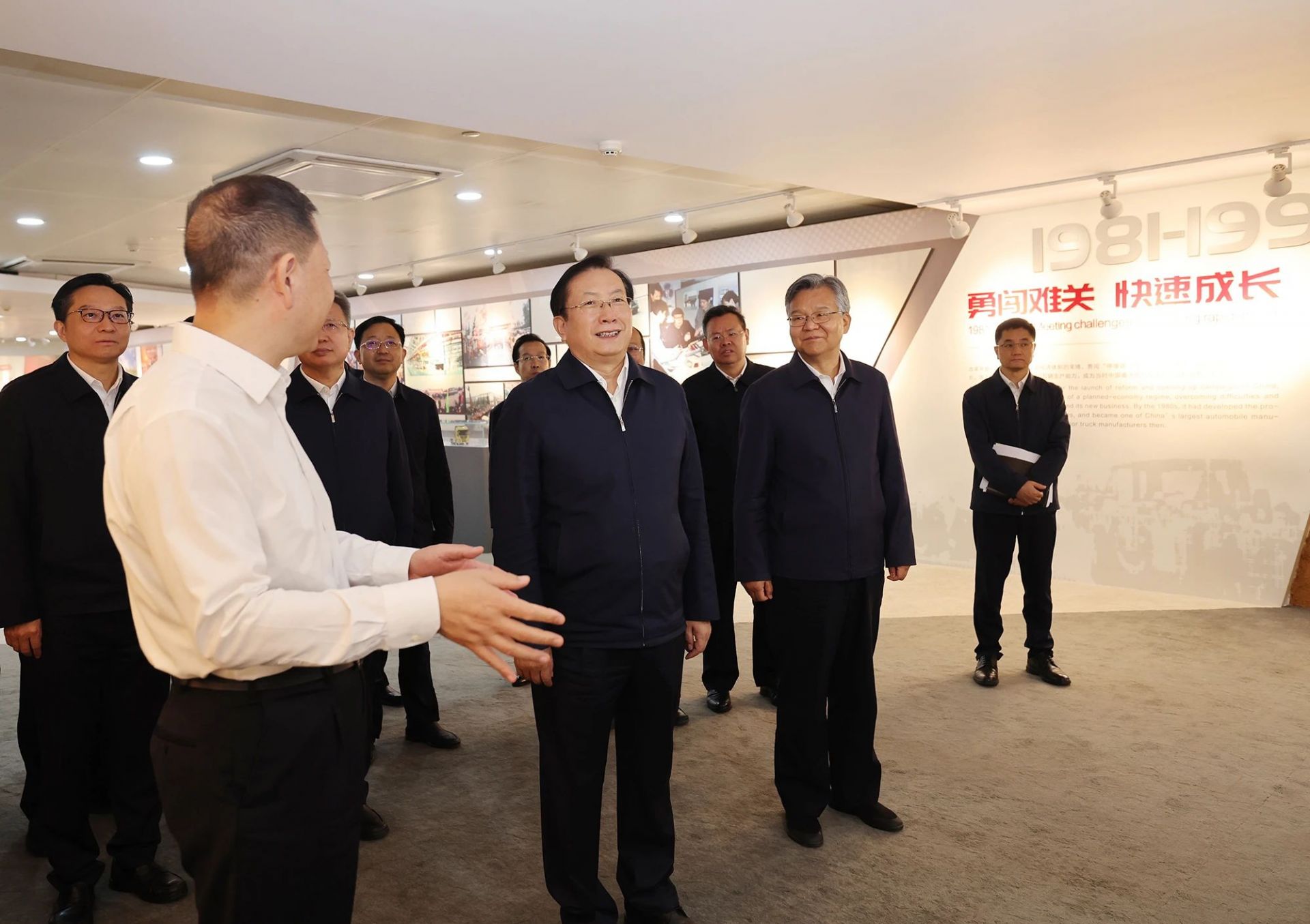 王忠林、李殿勛來到東風公司展廳,聽取公司發展歷程、企業文化、新產品規劃等情況介紹;在園區察看新能源汽車和商用車最新車型,了解產品性能、市場推廣和創新研發等情況。王忠林指出,要聚焦新能源和智能網聯發展方向,加大科技攻關力度,努力在自主掌控關鍵核心技術上取得新突破,不斷拓展新市場、塑造新優勢。