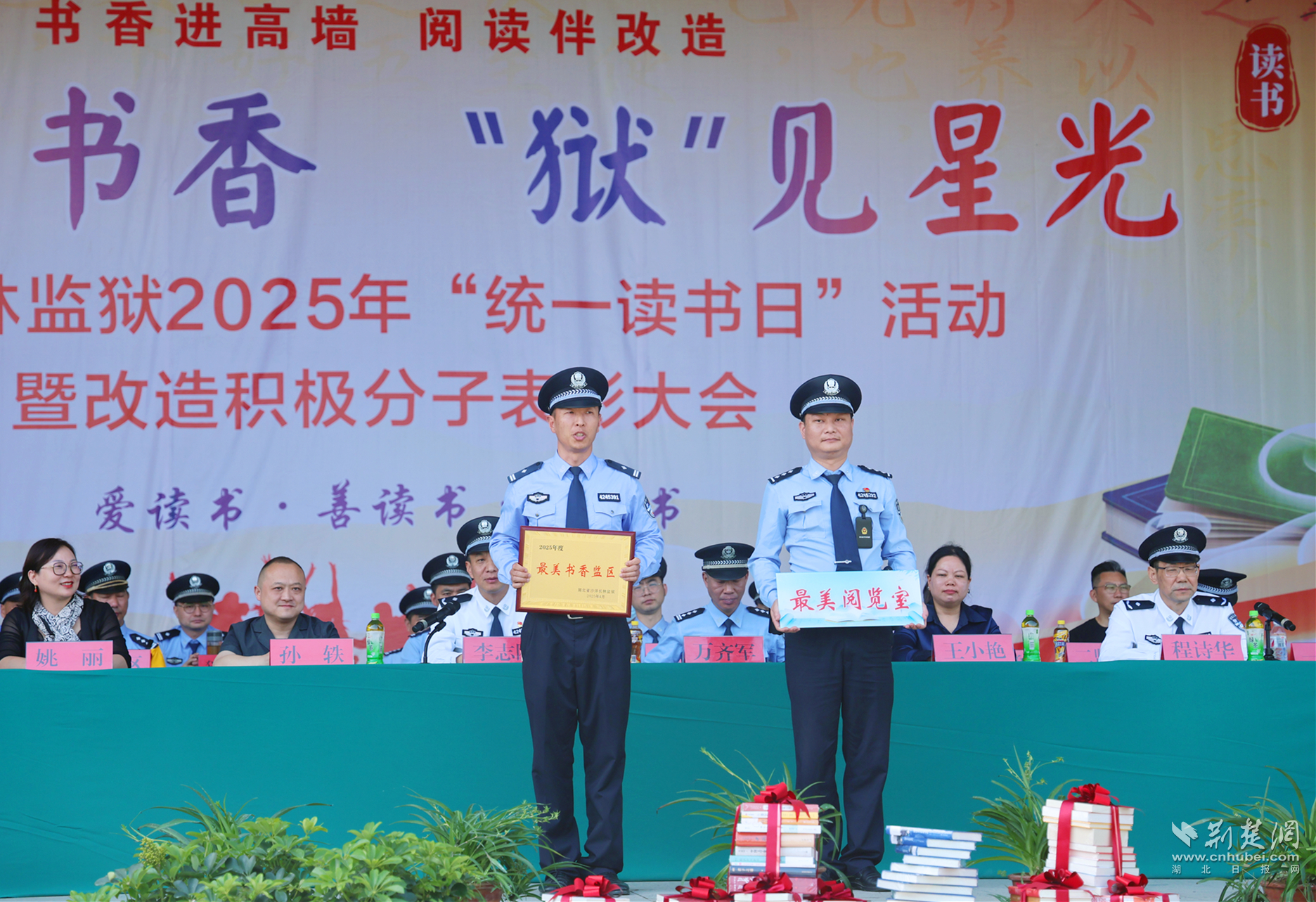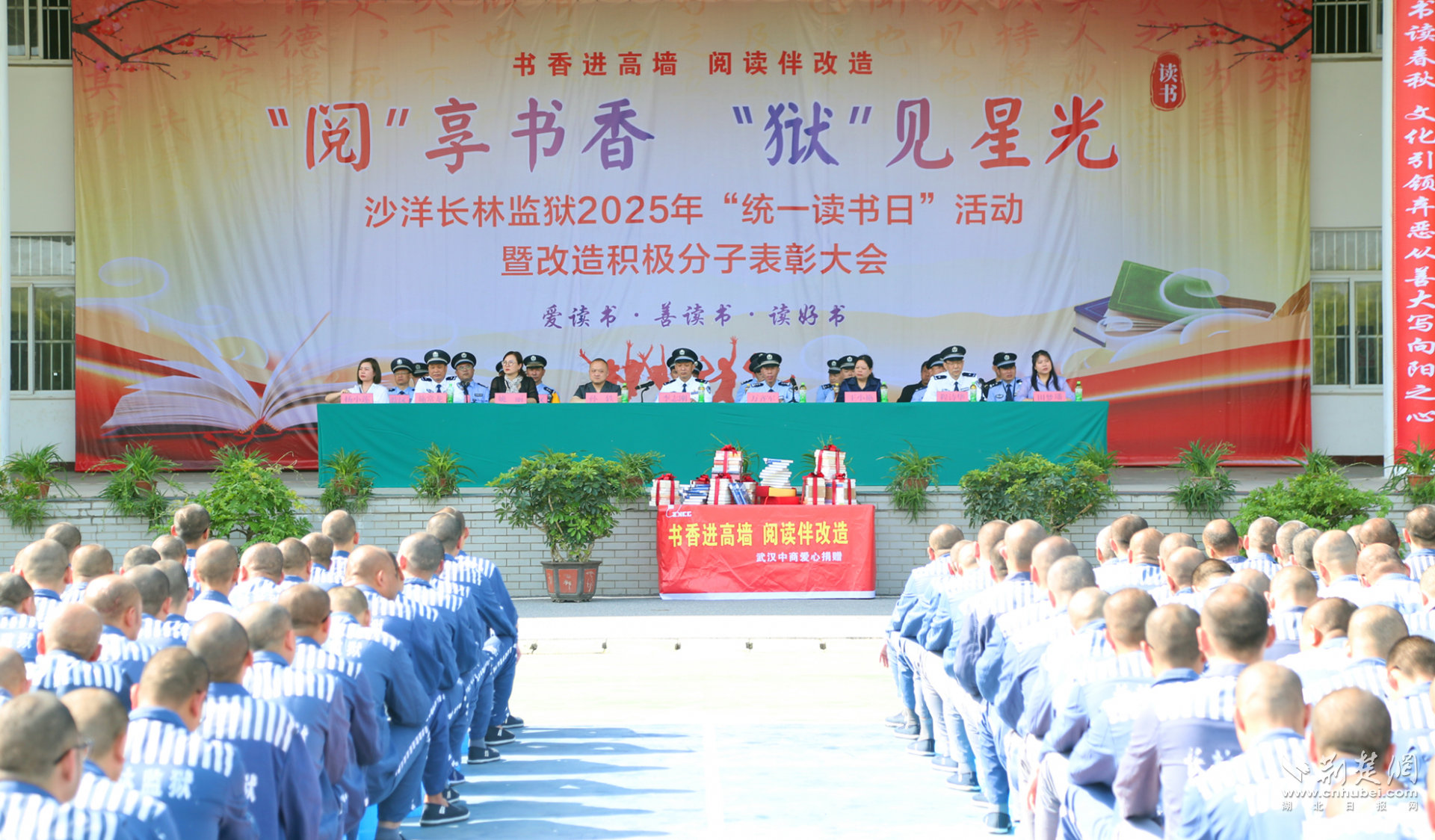 荊楚網(湖北日報網)訊(通訊員 鄭偉、張孟秋、胡可染)獄滿書香,正心塑魂。4月18日,伴隨著陣陣讀書聲,一場意義非凡的“統一讀書日”活動暨改造積極分子表彰大會在沙洋長林監獄監管區操場上進行著。來自沙洋人民法院,沙洋縣政協、文聯,以及武漢中商超市的愛心嘉賓攜手走進高墻,與服刑人員一道,共讀經典好書,分享學習感悟。