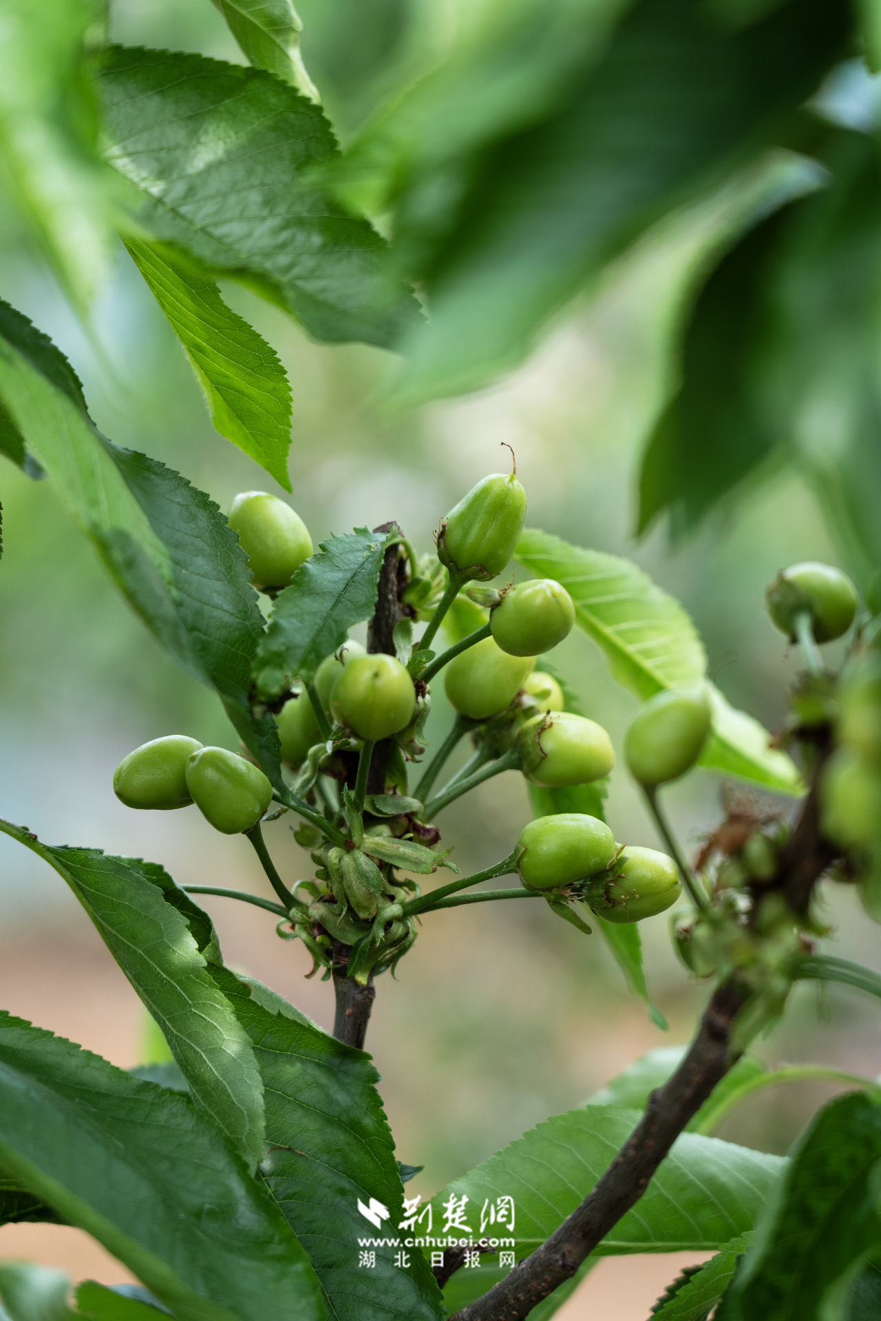 楊橋村種植的部分車厘子已經(jīng)掛果,它是當?shù)卮迕窨谥械摹梆B(yǎng)老樹”。荊楚網(wǎng)記者 劉建維/攝