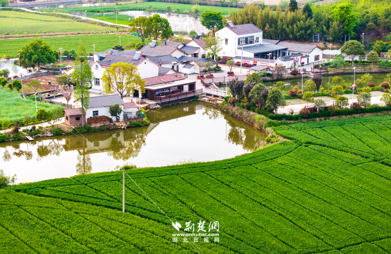 航拍楊橋村美麗鄉(xiāng)村——朱家臺。明朝嘉靖皇帝的姐姐常寧公主長眠此地,給她守陵的人家聚居于此形成了村落并延續(xù)至今。荊楚網(wǎng)記者 劉建維/攝