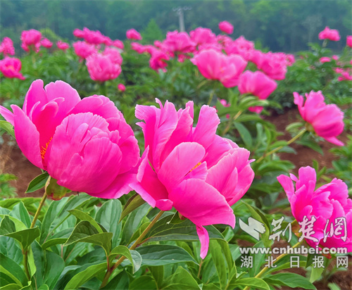 走進黑峪村芍藥花海種植基地,層疊的山坡早已被鮮艷欲滴的紅色所浸染,芍藥花海隨風蕩起層層波浪,交織著游人的裙擺,映襯著遠山的輪廓,勾畫出一副絢麗多彩的春日山野圖。孩童與蜂蝶追逐嬉戲,不時闖入攝影愛好者早已架好的鏡頭,“咔嚓”一聲,頂格住最生動的美好記憶。花海叢中,“共富市集”熱鬧非凡,仙居麥醬、土蜂蜜、瓜蔞子、熏肉等特色農產品琳瑯滿目,吸引游客駐足選購。“這瓜蔞子味道不錯,正好買點囤著!”從荊門市區趕來的王先生一邊挑選一邊贊嘆。