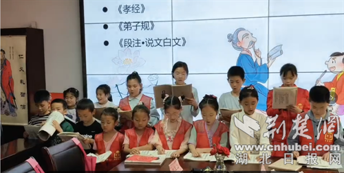 透過窗欞,孩子們齊聲誦讀,書桌上攤開著書卷,墨香縈繞鼻尖。家長們面帶微笑,細說平仄韻律;孩子們手不釋卷,吟《弟子規》名句,品《孝經》哲理。捧得書卷頌,墨香暗沾衣。國學跨越千年,在朗誦中重生,以興趣為舟,載著文化真義悄然泊入童蒙心田。