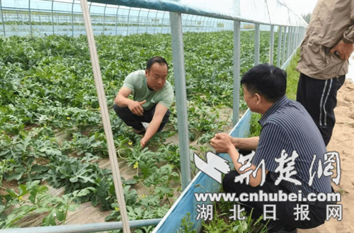 走進青星村西瓜大棚,潮濕溫潤的空氣裹挾著泥土芬芳撲面而來,碧綠的藤蔓間,“綠毛球”般的西瓜幼果若隱若現。大棚負責人介紹,每株西瓜均由專業技術人員在每日上午8時至10時光照適宜時間段,逐株進行人工授粉并標記,精心培育。