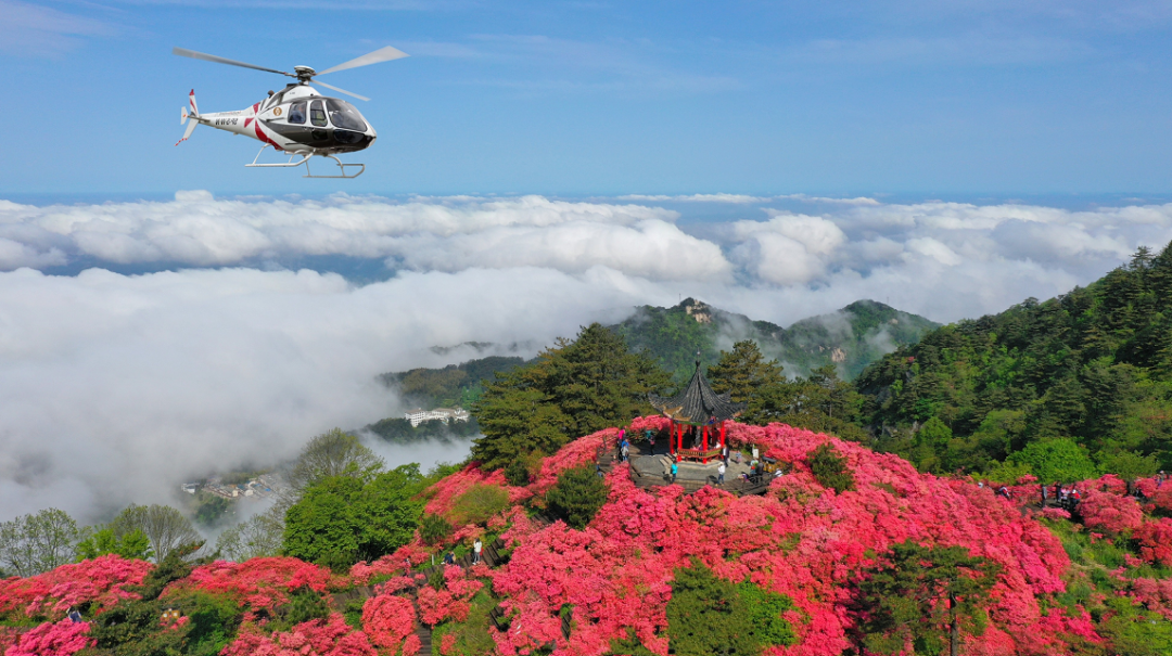 引入直升機“空中走廊”航線項目,實現(xiàn)“直升機遨游花?!钡莫毺伢w驗。直升機觀光串聯(lián)龜首問天、云海日出、杜鵑花海等標(biāo)志性景觀,螺旋槳劃破云霧的瞬間,連綿山巒與縹緲云海構(gòu)成的立體畫卷撲面而來,成為社交平臺的“爆款打卡項目”。