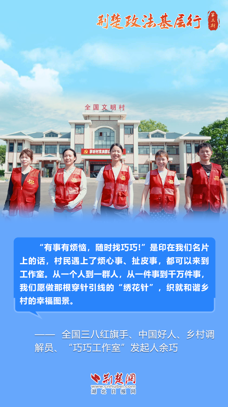正如鄂州市東溝鎮(zhèn)綜治中心調(diào)解員、“巧巧工作室”發(fā)起人余巧所言:“我堅信,社會治理的根須扎得越深,和諧穩(wěn)定的枝葉就越茂盛。我們愿做那根穿針引線的‘繡花針’,織就和諧鄉(xiāng)村的幸福圖景。”