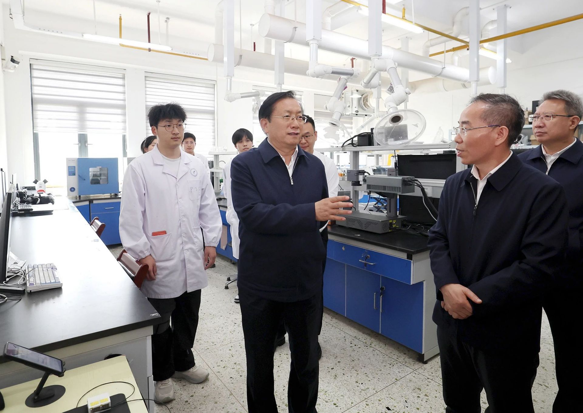 調(diào)研中,王忠林強調(diào),全省高校要全面貫徹黨的教育方針,牢牢抓住培養(yǎng)社會主義建設(shè)者和接班人這個根本任務(wù),堅持辦學(xué)正確政治方向,更好服務(wù)國家戰(zhàn)略、融入地方發(fā)展。要著力落實立德樹人,堅持為黨育人、為國育才,推進習(xí)近平新時代中國特色社會主義思想進教材、進課堂、進頭腦,以新時代偉大變革的生動實踐唱響中國經(jīng)濟光明論、中國社會安全論、中國人民幸福論、大黨大國責(zé)任論。要著力加快“雙一流”建設(shè),集中資源力量打造一流學(xué)科體系、一流人才隊伍、一流教研平臺,更大力度招引一批全球頂尖科學(xué)家和青年拔尖人才,不斷提升辦學(xué)水平和核心競爭力。要著力服務(wù)支點建設(shè),發(fā)揮高校科技創(chuàng)新策源功能,聚焦我省“51020”先進制造業(yè)集群,努力在基礎(chǔ)研究、關(guān)鍵技術(shù)、重大產(chǎn)品上取得突破,促進科技創(chuàng)新與產(chǎn)業(yè)創(chuàng)新融合發(fā)展。要著力推動黨建和業(yè)務(wù)深度融合,堅持把抓好黨建作為最大政績,建設(shè)高素質(zhì)教師隊伍,形成高水平人才培養(yǎng)體系,嚴(yán)格落實意識形態(tài)責(zé)任制,把意識形態(tài)工作融入日常教學(xué)管理,切實筑牢師生思想防線,營造安全穩(wěn)定校園環(huán)境,以高質(zhì)量黨建引領(lǐng)保障學(xué)校高質(zhì)量發(fā)展。