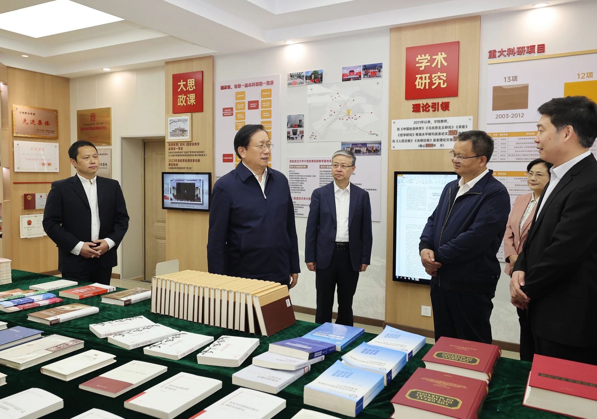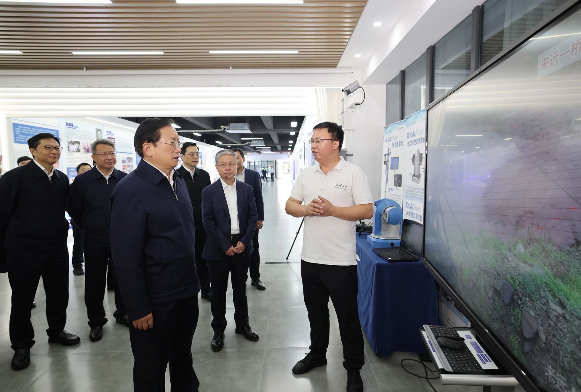 武漢大學(xué)馬克思主義學(xué)院是首批“全國重點馬克思主義學(xué)院”。王忠林來到學(xué)院文化長廊,聽取學(xué)院歷史沿革、師資隊伍、大思政課設(shè)置等情況介紹;在黨的創(chuàng)新理論研究闡釋成果陳列室,了解學(xué)院最新研究成果,希望學(xué)院堅持“兩個結(jié)合”,加強黨的創(chuàng)新理論體系化、學(xué)理化研究闡釋,把偉大抗疫精神融入大學(xué)生思政課,引導(dǎo)大家“心往一處想、勁往一處使”,更好凝聚奮進新征程的磅礴力量。在武漢大學(xué)水利水電學(xué)院水資源工程與調(diào)度全國重點實驗室,王忠林聽取學(xué)院黨組織建設(shè)、人才隊伍建設(shè)、大學(xué)生黨員發(fā)展等情況介紹,參觀學(xué)院科技成果展廳和全國科學(xué)家精神教育基地,了解視覺測流產(chǎn)品等智慧水利成果轉(zhuǎn)化應(yīng)用情況,希望武漢大學(xué)繼續(xù)發(fā)揮水利學(xué)科優(yōu)勢,為湖北治山理水提供有力支撐。王忠林指出,城市因名校而聞名,名校因城市而發(fā)展。武漢大學(xué)是湖北的一張亮麗名片,為湖北經(jīng)濟社會發(fā)展提供了強大的人才和創(chuàng)新支撐。希望武漢大學(xué)在黨的建設(shè)和“雙一流”建設(shè)上繼續(xù)走在前列。湖北將優(yōu)化服務(wù)、強化保障,助力武漢大學(xué)加快建成中國特色世界一流大學(xué)。