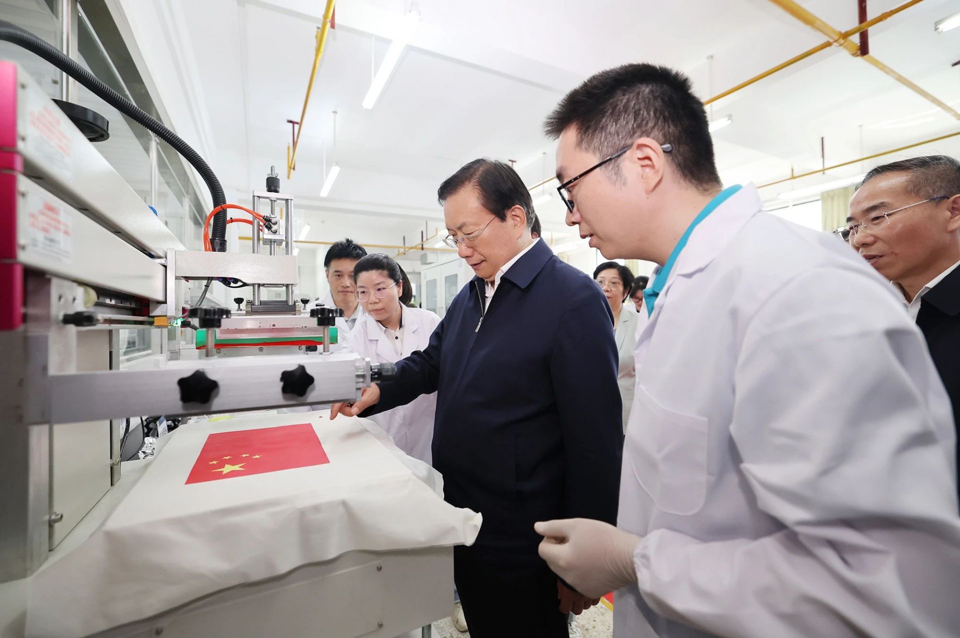 武漢紡織大學(xué)是我省“國內(nèi)一流學(xué)科”建設(shè)高校,學(xué)校紡織新材料與先進加工技術(shù)全國重點實驗室在承擔(dān)國家重大項目中作出突出貢獻。王忠林來到學(xué)校陽光校區(qū),察看實驗室建設(shè),了解技術(shù)創(chuàng)新和產(chǎn)品研發(fā)情況,觀看“嫦娥五號、六號月面國旗”制作展示,對實驗室“圍繞中心抓黨建,抓好黨建促發(fā)展”表示肯定。在紡織科技館,王忠林聽取學(xué)校以黨建引領(lǐng)高水平科技創(chuàng)新、人才強校建設(shè)等情況介紹,參觀科技成果展示,了解紡織行業(yè)的發(fā)展歷史和未來趨勢,要求省、市相關(guān)部門加強服務(wù),加快推動學(xué)校最新科技成果落地轉(zhuǎn)化。王忠林指出,省委、省政府對省屬高校寄予厚望,希望武漢紡織大學(xué)奮勇爭先,為湖北經(jīng)濟社會發(fā)展貢獻更大力量。省委、省政府將一如既往支持武漢紡織大學(xué)發(fā)展,為學(xué)校加快實現(xiàn)“雙一流”建設(shè)目標(biāo)創(chuàng)造良好條件。
