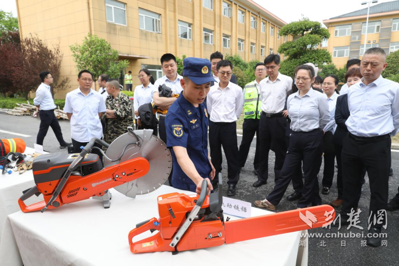 工欲善其事,必先利其器。來到裝備展示區,大家仿佛置身“科技展館”。能高效滅火的消防坦克機器人,可根據火情動態調整噴射模式,在宣傳員的操作下,高壓水炮通過水柱與水霧的快速切換實現精準控火,引得參訓人員高呼:“這簡直是會滅火的變形金剛!”無齒鋸、機動鏈鋸、空氣呼吸器等消防救援裝備讓參訓的企業員工目不暇接,宣傳員一邊展示設備,一邊講解其功能與應用場景,讓大家近距離感受現代化消防科技力量。