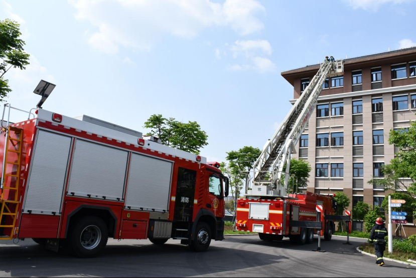 整個演練井然有序,根據(jù)現(xiàn)場指揮部下達(dá)的指令,消防救援人員和各聯(lián)動單位動作迅速,按照“救人第一、科學(xué)施救”原則,逐一開展了火情偵查、內(nèi)攻搜救、控火堵截等程序,通過攜帶偵檢器材、破拆器材、救援擔(dān)架等救援裝備在水槍掩護(hù)下深入火場內(nèi)部進(jìn)行救人,消防人員通過架設(shè)9米拉梯和使用云梯消防車進(jìn)行外部救援,快速、圓滿完成滅火與救援任務(wù)。