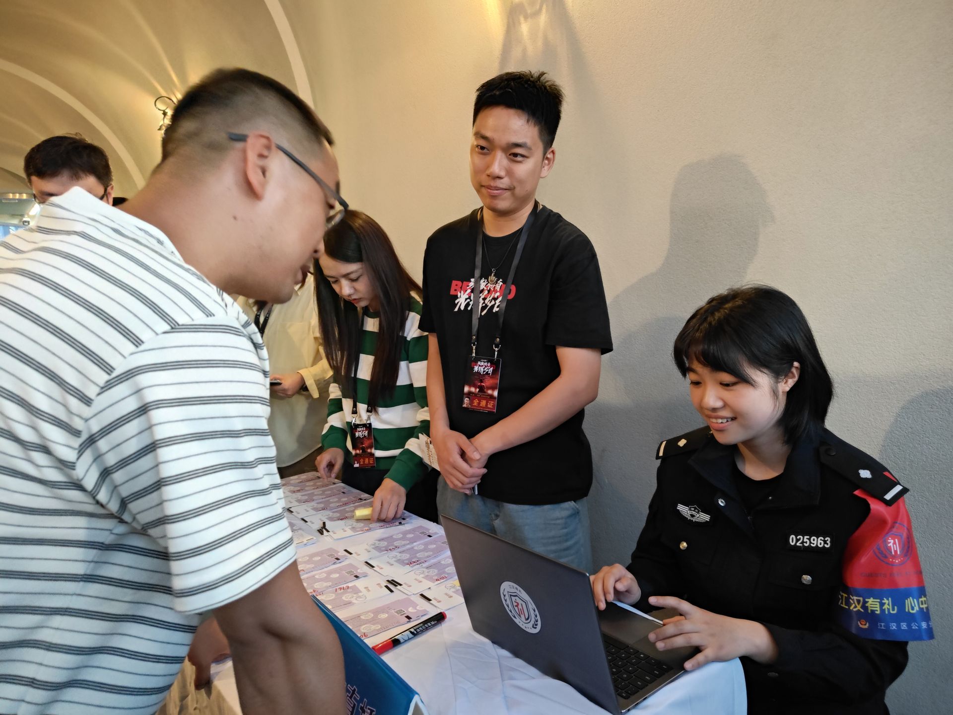 “江漢有禮不僅是服務品牌,更是營商環(huán)境優(yōu)化工程。”江漢區(qū)公安分局政務服務大隊相關負責人在接受采訪時表示,品牌建設深度融入“六大環(huán)境”提升:推出的“首席禮賓官”制度,為10家重點企業(yè)配備專屬服務團隊。當日活動共發(fā)放定制版“江漢有禮”政策福袋600份。隨著現(xiàn)場音樂旋律回蕩,大屏實時展示的“江漢有禮服務熱力圖”成為亮點,30分鐘內(nèi)解決企業(yè)安保咨詢5件,現(xiàn)場辦理人才禮遇預登記41件。
