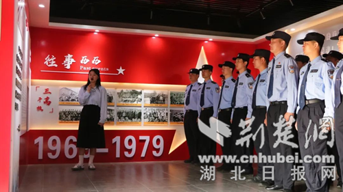 活動首站,青年民警走進五七干校紅色教育基地,透過勞動館內斑駁的農具、生活館中復原的舊居場景,沉浸式感受老一輩黨員干部聽黨指揮、自力更生的奮斗歷程。參觀結束后,全體青年民警高舉右拳,重溫入警誓詞,鏗鏘誓言響徹云霄,充分展現新時代青年民警的赤誠忠心與使命擔當。
