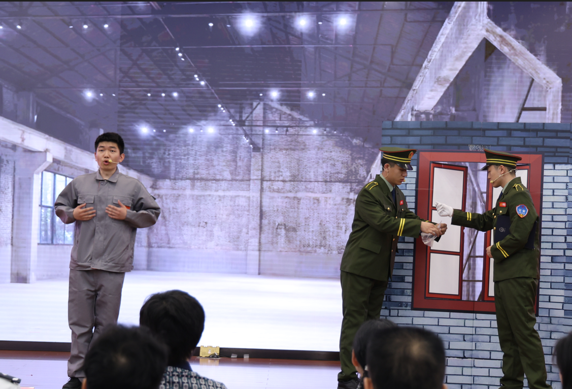 隨后,“警營里的思政課”分為四個篇章依次展開。在“歷史之光映初心”篇章中,主題團課《傳承百年的青春火炬》和音樂情景劇《逆風行歌》,通過創新性融合,生動演繹思政理論。主講人以革命烈士夏明翰的《就義詩》為引,串聯起不同時期青年拼搏奉獻的故事,激勵當代青年以先輩為榜樣。