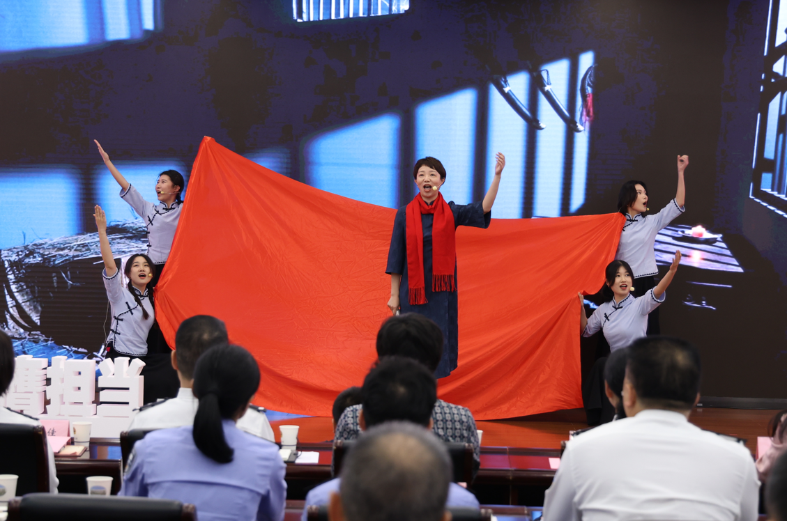 活動現場,來自全局 20 個單位的 50 余名青年民警輔警代表,從黨史故事、公安發展、身邊榜樣和從警經歷中挖掘鮮活素材,通過演講、合唱、快板、辯論賽、情景劇等多種形式,以“小切口”呈現“大主題”,讓理論宣講變得有“知”有味、“聲”入警心。