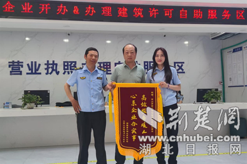 荊楚網(湖北日報網)訊(通訊員 黎江明 鄧義蓉)4月29日,筆者從京山市獲悉,一面印有“高效服務暖人心,心系企業辦實事”的錦旗被送往“市民之家”,鉑陸重工湖北有限公司負責人握著京山市市場監管局工作人員的手感慨萬千。